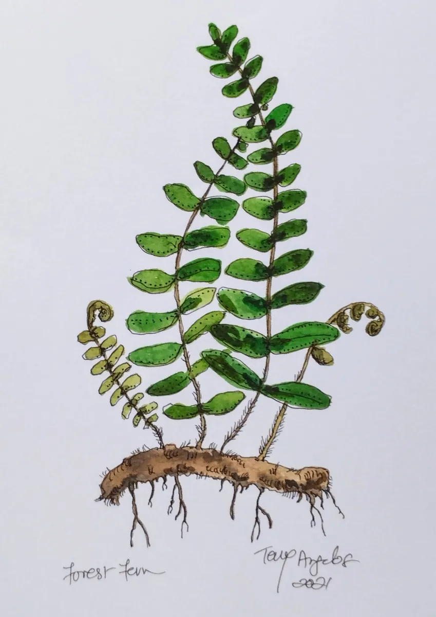 Digital art print of an original watercolor Fern illustration by Terry Angelos. Printed on premium board. Unframed.