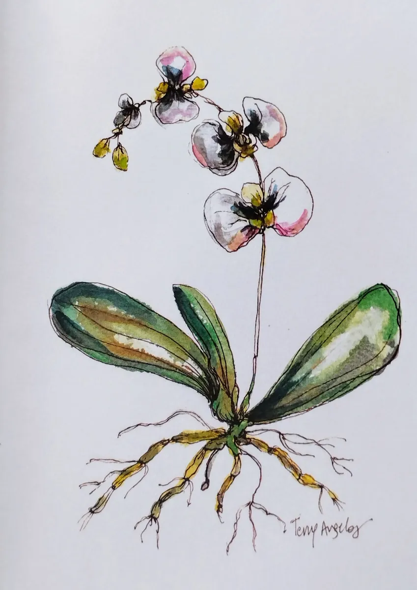 Digital art print of an original watercolor Orchid illustration by Terry Angelos. Printed on premium board. Unframed.